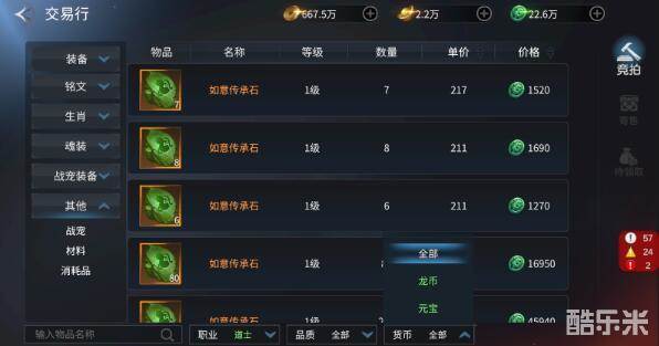 另外不同的货币还能买不同的道具,根据自己的需要来定即可。寄售玩法就是卖东西,我们不用的东西都可以放在交易所中售卖,你还能选择交易的货币,大家赶紧试试吧。