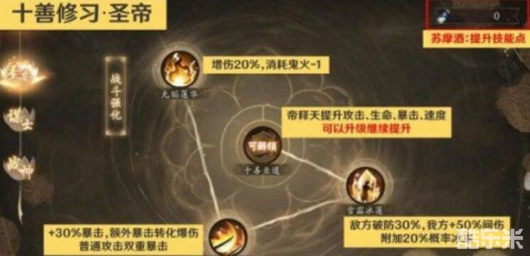 十善业道:帝释天提升生命、攻击、暴击、速度(可重复加点)