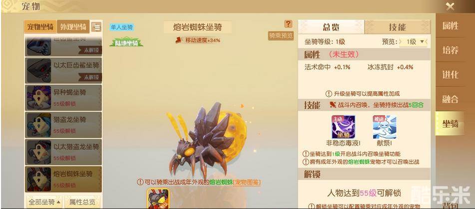 ①每个宠物坐骑都有对应的成年外观宠物,解锁坐骑之后可以骑乘默认坐骑,拥有对应的成年外观宠物也可以配置骑乘。