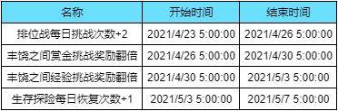 开启时间:4月23日5点至6月18日5点