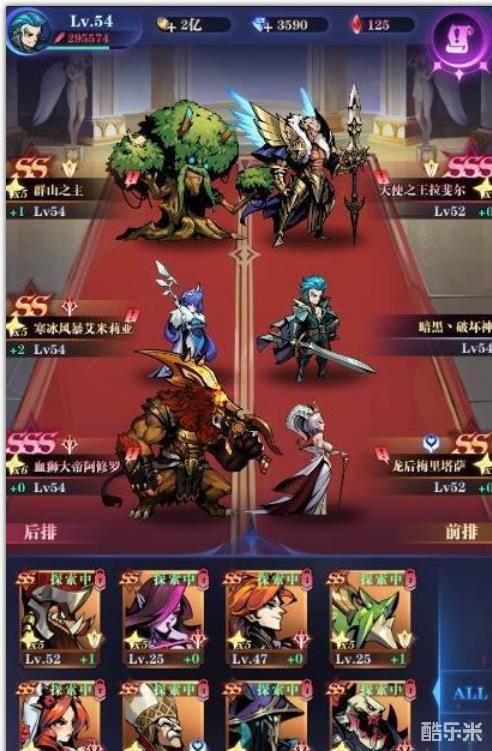 三前排是阿姆,后排中间是罗杰。尝试了很多次狮子站前排中间吃伤害吃复活,拼脸暴击,问题是暴击一下打不死阿姆,魔导给吸血也吸不上来,第二轮罗杰就砍翻了狮子,就算拼脸大树、寒冰控到,但有时候也会被罗杰晕到狮子,同样GG,打了好多把,都没过。于是就不想着一波带走了,就多打几波等血线下去,狮子连起来。