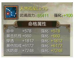 Ø 70级命格“天煞孤星”,该命格拥有穿透、暴伤两种核心属性,强化部分属性为命格槽100级效果;该命格可合成。