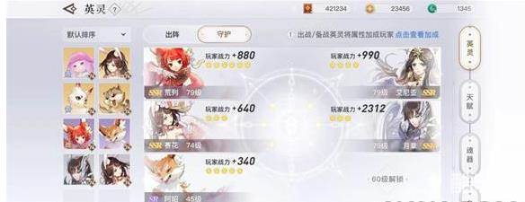 1、英灵守护系统中,放入守护位的英灵将提升主人的属性和战力
