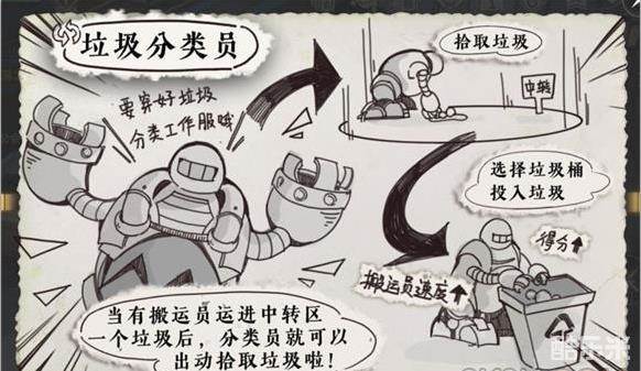 3. 没有穿垃圾分类工作服的需要承担搬运垃圾的工作,即将散布在场地上的各种垃圾搬运进入蓝色的垃圾中转区域,每次只能搬运一件垃圾。搬运时要小心避让场地上游荡的垃圾大王