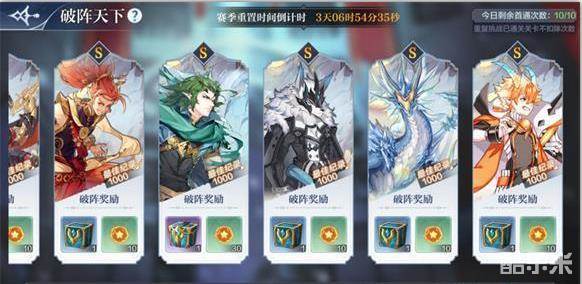 随便说说英雄,就目前来看,破阵天下必须要火系主力,火系之王龙炎必须出,抽到一个就停手,抽不到,官方有活动120,千万别普通抽,指定抽加次数,定抽尽量达到120,我相信0氪也能达到,钻石前面就搞这玩意,抽不到拿到低保尽量120就停手,千万别上头,为什么必须要龙炎,看下图,在我没有龙炎的时候我一个都没有S,木系全A,后来火系龙出了基本直接全S,当然,以我技术随便拿最后一档,这里面的东西必须全拿,不会站位有别人站位参考,也有录像,排名不好拿,分数两个必须拿满,必须,这是你通向王者之路的最简单的关卡,奖励是橙色,橙色朋友,你知道有多好获取吗?