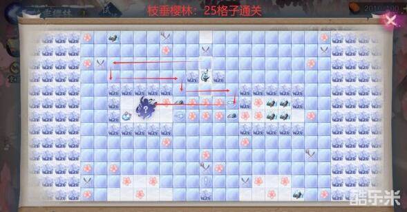 首先是如图所示的第一条路线,这是一条25格子就能通关的路线图,很短很短了。