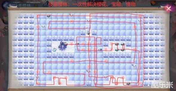 然后是第二条路线图,一次性的可以解决掉使用樱花,怪物,还有宝箱,虽然绕了点,但这可是最佳路线哦。各位小伙伴们学会了没有?如果学会了就快去游戏里面试试吧。如果没学会也不要紧,保存下来对照着走吧,小心点就不会走错哦。