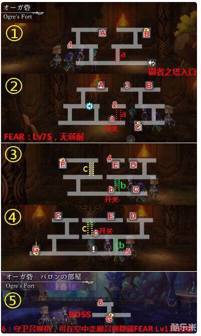 流程:霸者之塔入口→A→开关a→A→B→C→开关b→D→开关c→D→F→G→BOSS
