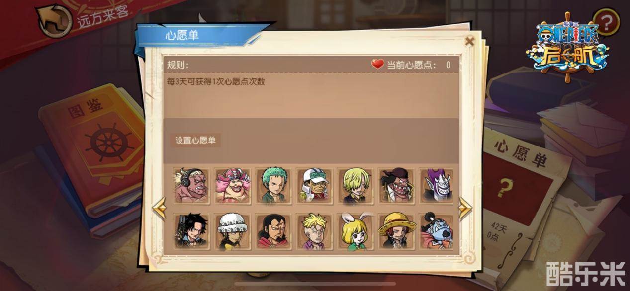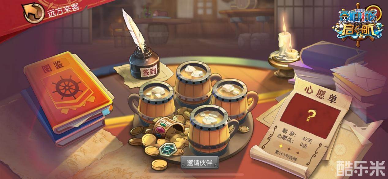 若活动期间错过每日的“邀请伙伴”,可消耗200钻石获得补签功能,最多可补签五次,完成补签后也可立即获得伙伴整卡,补签仅限从最小数字开始,随机从奖池抽取伙伴,已抽取到的伙伴无法再次获得,并且补签无法触发心愿单。此外,图鉴功能可查看已获得/可获得伙伴的详细情况,船长们获得心愿点后就可将SSS角色或其他心仪的角色添加至心愿单,可以最快获取你想要的角色。