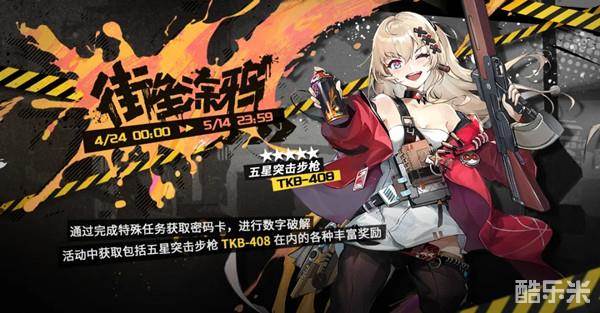 4月24日00:00~5月14日23:59期间,完成期间特殊任务,即可获取密码卡进行数字破解,破解连线后将获得丰富奖励,其中包括全新五星突击步枪人形TKB-408!