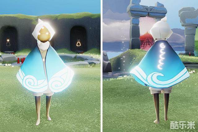 第一版“海浪斗篷”,其正面遵循了光遇斗篷的图像对称原理,同时也符合了我们的对称审美观念。或许是第一版有些平平无奇的缺乏动感的缘故,TGC便将其正面的对称修改成了具有动态效果不对称的海浪。