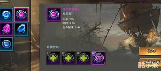 格挡魔石搭配减伤魔石,增加血量上限和减伤、格挡属性。