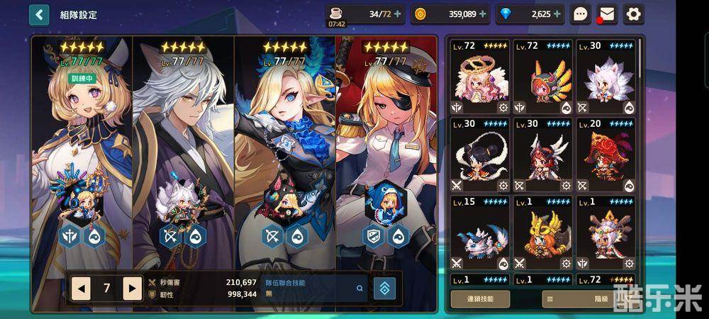 然后我的组合面对两隻小贝丝,用只剩一隻水主教也是打的掉,两发技能进连锁就能打掉他们(水狐+水属攻击,水魅+爆击)攻击力比较够,不怕元气弹