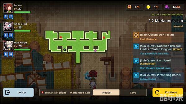 开局往下走有2个紫螺丝,房屋里有隐藏通道,地图左边有木桩的地方需要通关剧情3-6解锁钩爪才能过去,最后和公主对话可以得到1个黄钻