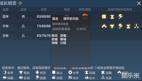 在千年升万年时,第一个千年印记和百年一样,第二个千年印记:旋龟、霸象、犀象、鲸牛。第一个百年印记:任意百年鹿、羚羊。第二个百年印记:鸡龙,任意蝙蝠,神雕,百年蝴蝶,最后一个印记再加一个无限血蛋。