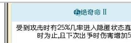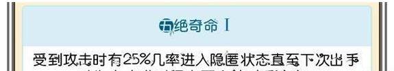 优点:难得的可以用后排棍的随从,而且天赋可以升级至3阶。天赋特点是受到伤害后有概率隐身,使自己不是受到攻击的首要目标,后排生存能力天花板的男人(某地板生存角落画圈圈)3阶天赋隐身时受到伤害还会有25%免伤,下一次攻击伤害+50%!生存能力和输出能力拉满的男人!(小姜nb!)还是一个后排的万金油由于优秀的输出能力适合后排输出可以刀,剑棍,在武道完克刮痧11剑。