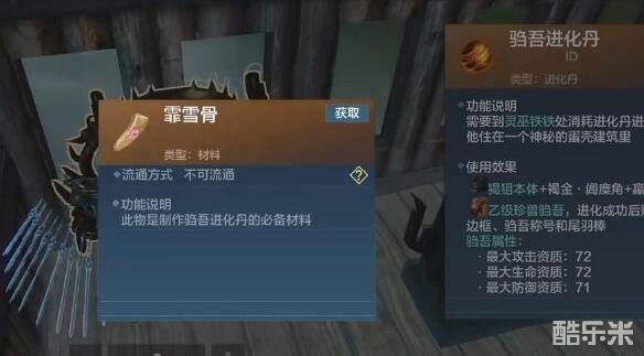 霏雪骨作为制作驺吾进化丹时需要用到的材料,徐有毒还是比较傲的,等到驺吾上线之后,大家想要进化出神兽驺吾,霏雪骨也是必不可少的材料。