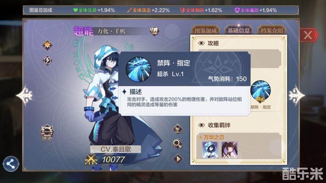 降低与自己站位相同的敌人20%的攻击力,大招打跟自己位置相同的精灵。