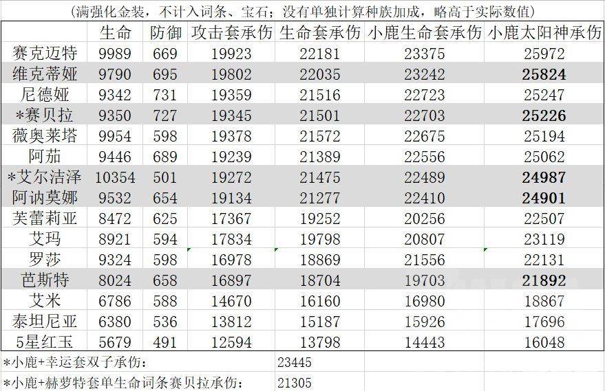 艾尔洁泽是承伤最高的3t输出,也是主要伤害的提供者,是现有环境下最适合3t群体输出的角色。赛贝拉拥有两个治疗技能,能提升阵容稳定性,且承伤仅次于艾尔洁泽,是辅c位最佳选择。芙蕾莉亚的输出与赛贝拉相近,可以作为下位替代,同时芙蕾莉亚也是对阵艾希尔时需要上场换下艾希尔/阿讷莫娜的第三位输出。珊德薇和赛克迈特仅在对方没有幽灵套时可以作为辅c。芭斯特和艾玛都能完成增伤任务。芭斯特的泛用性更高,能count愿你好梦系列剧照。艾玛与暗属性的艾尔洁泽是很好的搭配,更多的增伤使得输出能穿生命套装完成斩杀,但也会留下敌方赛克迈特作为漏网之鱼。艾希尔和阿讷莫娜的作用相近,在艾玛上场时需要绑定阿讷莫娜。维克蒂娅有一定的减伤,并且可以保证在面对速攻队时抢到3t的先手。
