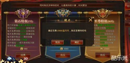 特权卡是独立在贵族之外的特权,有三种级别,分别是钻石、王者、至尊,等级越高,官方附赠的福利就越多,如果想要称霸全服的话,这个特权是绝对少不了的。