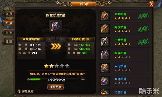 低等级的护盾可通过消耗护盾碎片进行升级,进阶为更高等级的护盾。拥有高等级护盾,再也不担心被别人一刀秒杀了。