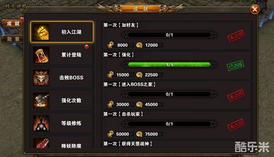 通过击杀怪物、通关副本、升级装备、参与活动等,均可得到大量的成就积分。