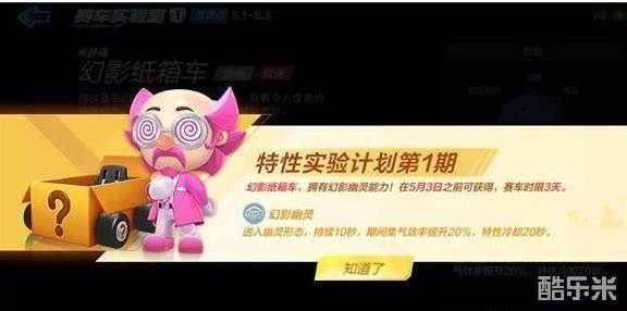 车友们5月3日之前,可以在赛车实验室领取到——幻影纸箱车进行体验,赛车体验时长为3天,车技超凡的车友们快来帮帮R博士,一起进行赛车实验吧!