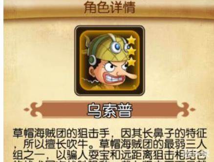 热血冒险团乌索普人物详解是小编为大家带来的,乌索普是四皇团红发海贼团干部耶稣布的儿子,勇敢的海上战士,拥有8000名部下的强大海贼,另一重身份乃是威风鼎鼎的狙击王。下面不妨详细了解一下吧。
