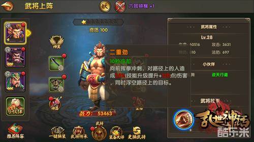 队伍系统为你展示当前队伍配置的最详细信息。你可以通过点选队伍中的三个不同武将,来分别查看他们的技能、数值与小伙伴,对他们进行分别的培养。