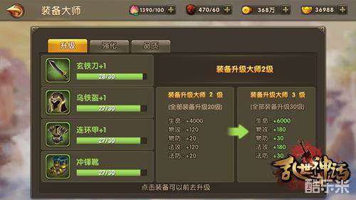 每个武将都有自己的一套装备和神器、宝石。通过队伍界面,你可以最方便的查看当前队伍中的武将的全部装备系统,并对他们分别进行升级。只有每个武将都做到尽善尽美,才会让你的队伍没有短板。