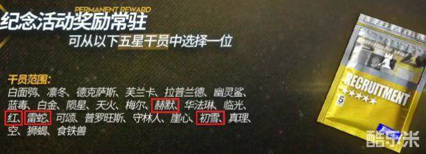 红框中为另一张五星凭证可选干员