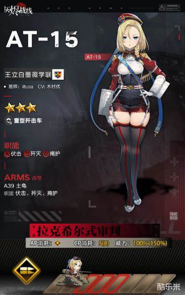 《灰烬战线》游戏中有许许多多的角色供玩家选择,角色也分各种属性的,强度都不一样,相信还有很多小伙伴不是很清楚灰烬战线AT-15技能是什么。下面小编给大家带来了灰烬战线AT-15技能属性介绍,感兴趣的小伙伴们一起来看看吧,希望能帮助到你们。