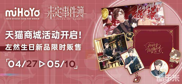 4月27日起,《未定事件簿》官方天猫商城将开启左然生日庆典活动,多样精美周边上新。