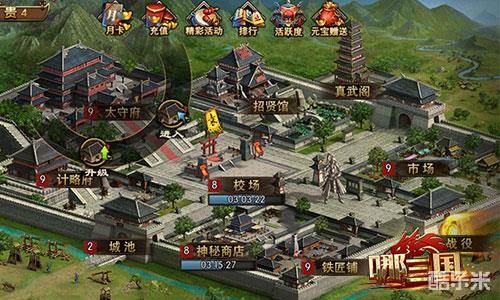 城池建设是战略游戏最基础的一环,所有的发展都必须以建设为前提。《哪三国》城池中共有七个可升级建筑,分别是太守府、计略府、校场、铁匠铺、神秘商店、市场、伐木场。重要性依次下降。