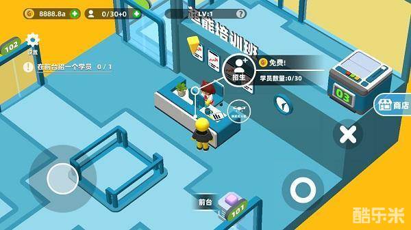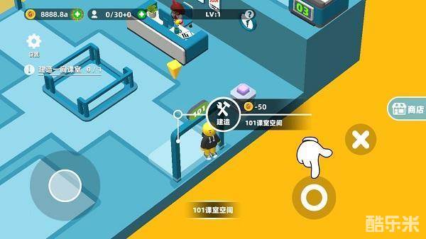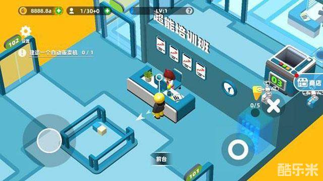 点击右侧图中的圆圈即可建造各种设施,比如任务引导下的建造前台。