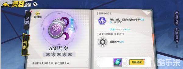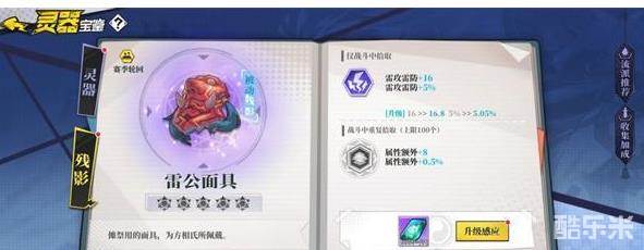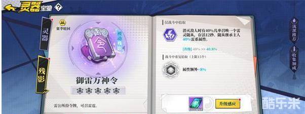 残影升级主要推荐:雷公面具,御雷令,五雷令,惊雷宝印