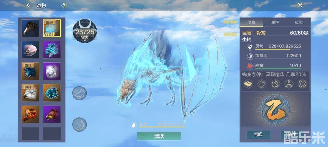 这里骨龙所需要的是万化丹·空,我们对其进行喂食,即可得到蜕化后的骨龙—万年·巨兽·骨龙。