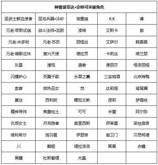 2、使用联动召唤券时,不会获得已经满破的联动角色(赤瞳、黑瞳、玛茵、艾斯德斯)。若以上角色全部满破,召唤时会获得神眷波哥达·宗师,可以用于突破其他角色。