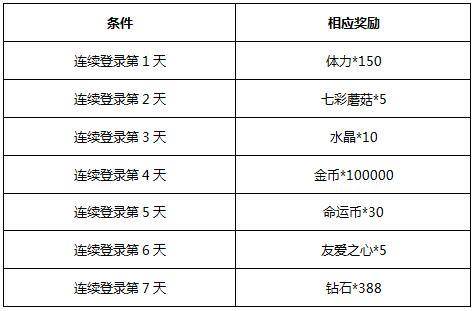 2、连续登录第7天的奖励可是388钻石哟~