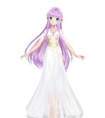 银紫色及腰长发,白色连衣纱裙神金雕饰在密细白纱裙性.感迷人,腰间的金色纹饰象征着雅典娜女神至高无上的地位。