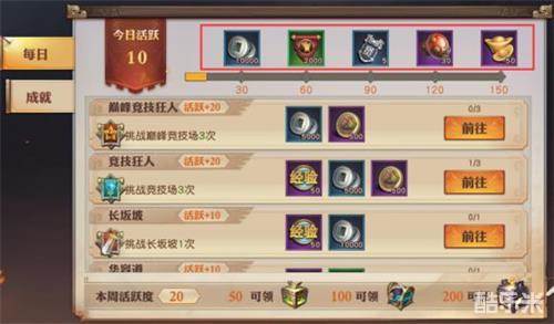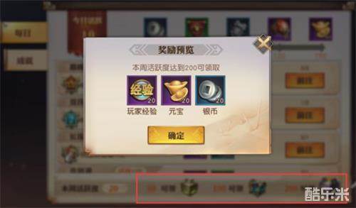玩家每日完成活跃度可以累计,以一周为时间节点。期间,如能满足周活跃,则能领取更多的奖励。