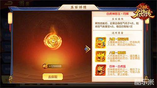 白虎神怒玉•月辉:释放技能后,如果自身怒气低于4点,则将怒气恢复至4点,每回合限制1次;