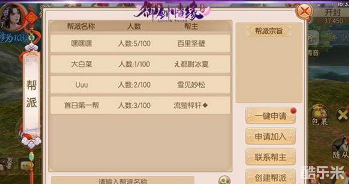 申请入帮:在帮派界面的帮派列表中,选择想要加入的帮派,然后点击右下方的申请加入按钮,即可发出申请。也可以点击一键申请按钮,同时向所有显示出的帮派发出入帮申请。