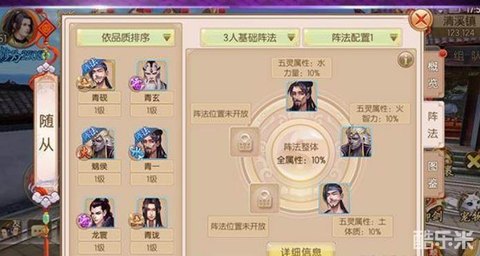 当阵法中每个空位均配置随从后,阵法方可成功激活。若所配置随从与空位的五灵属性相同,可获得更高的属性加成。