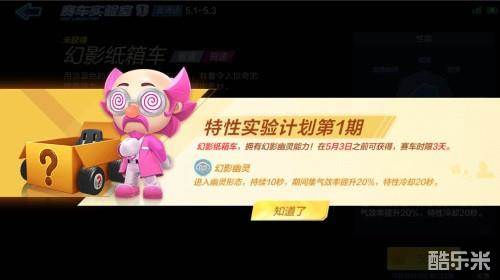 车友们5月3日之前,可以在赛车实验室领取到——幻影纸箱车进行体验,赛车体验时长为3天,车技超凡的车友们快来帮帮R博士,一起进行赛车实验吧!