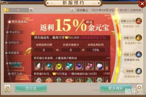 5周年预充值活动已于4月26日15:00正式开启,因热度已达到爆满,已解锁预充值返利15%,返利上限为60000金元宝,比去年周年庆高出15000金元宝!还能5.55元穿任选绝版时装,98元购5阶坐骑无极熊,让道友在5周年大服快人一步!欢迎到游戏内参与。