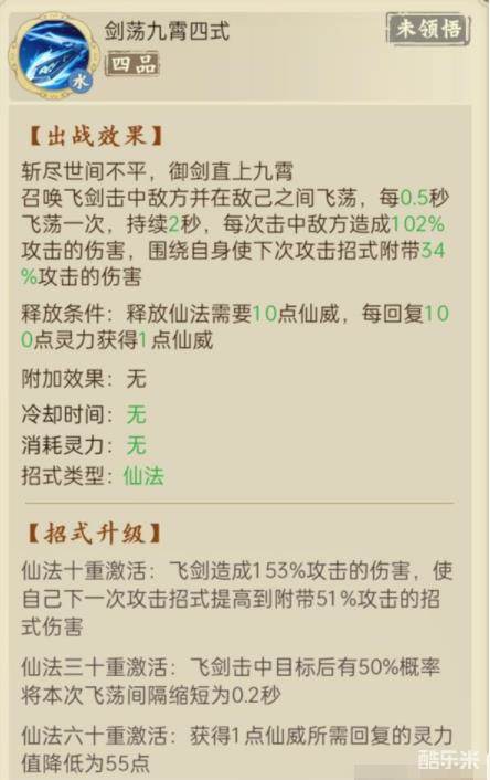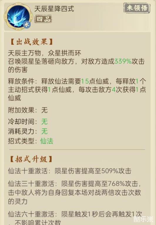 释放条件:释放仙法需要10点仙威,每回复100点灵力获得1点仙威