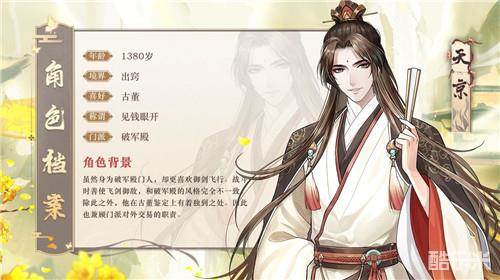 天京虽然身为“破军殿”门人,却更喜欢御剑飞行,战斗时善用飞剑御敌,与“破军殿”大开大合的风格完全不一样。除此之外,他在古董鉴定上有着独到之处。因此,他也会兼顾门派对外交易的职责。
