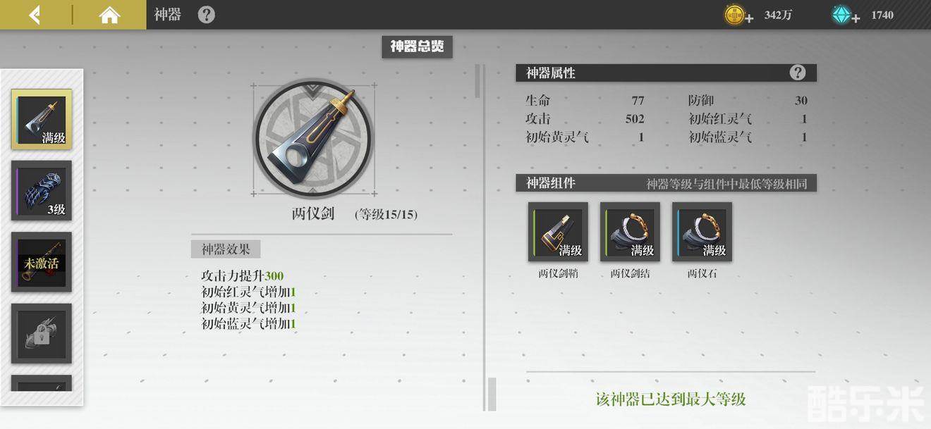 4,推荐将神器两仪剑刷到满级再来打,满级的两仪剑会增加红黄蓝初始能量一点,可以更快的将守护灵召唤出来