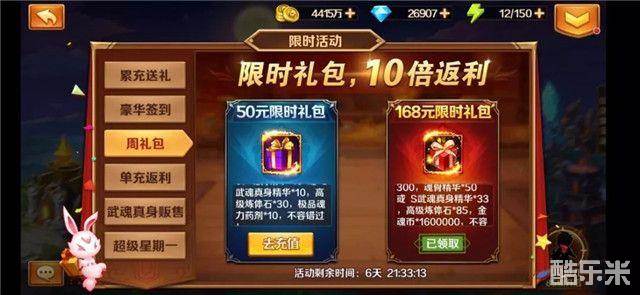 ②豪华签到:5天×6元=30元礼包(自选16个真身精华或S魂骨碎片10片)。